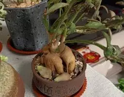 瓶干树又名佛肚树,学名是Jatropha podagrica Hook.,瓶干树的原生地是澳洲的昆…