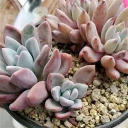 立田锦多肉,易群生的景天科拟石莲花属和厚叶草属杂交多肉品种。茎直立,株高30厘米以内,其叶排列呈莲…