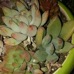 青星美人是景天科厚叶草属的多肉植物。开花时抽生出长长的花梗,簇状花序,红色花朵依次开放,呈倒钟形,…
