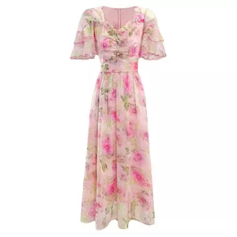 粉色雪纺裙