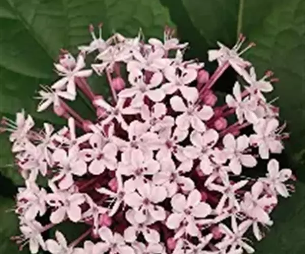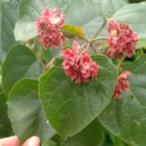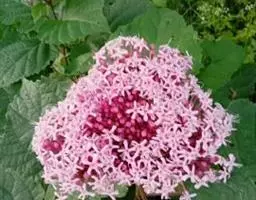 臭牡丹(学名:Clerodendrum bungei Steud.)是马鞭草科,大青属灌木,高可达2米,植株有臭味;花序轴、叶柄密被脱落性的柔毛;小枝近圆形,叶片纸质,宽卵形或卵形,边缘具粗或细锯齿,侧脉表面散生短柔毛,伞房状聚伞花序顶生,苞片叶状,披针形或卵状披针形,小苞片披针形,花萼钟状,萼齿三角形或狭三角形,花冠淡红色、红色或紫红色,裂片倒卵形,花柱短于、核果近球形,5-11月开花结果。