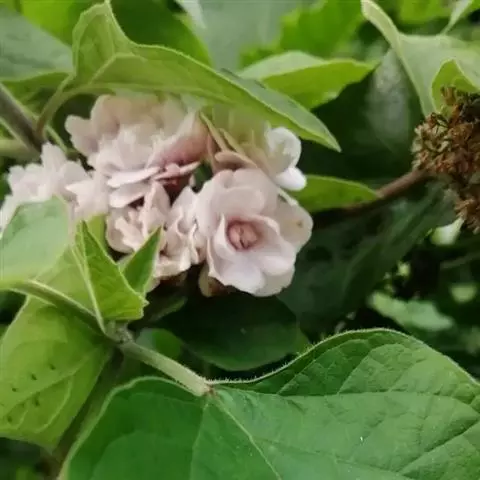重瓣臭茉莉 Mabb.)是唇形科大青属植物 。枝柔毛,叶形近心形,先端渐尖,基部平截,浅心形,…