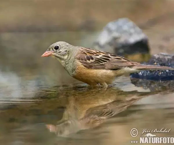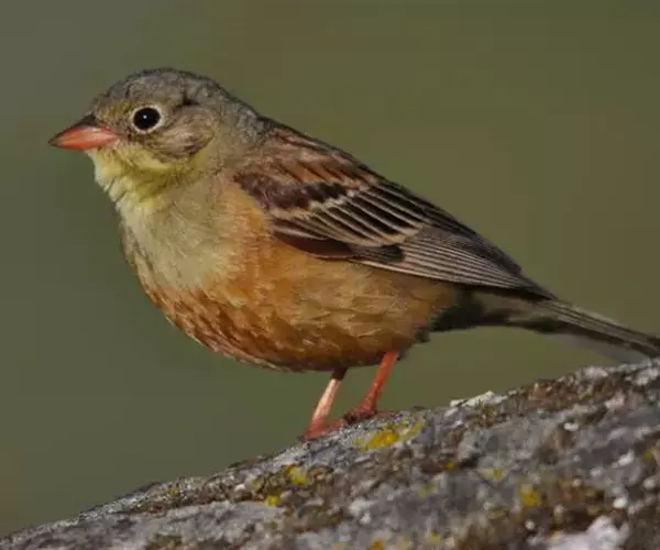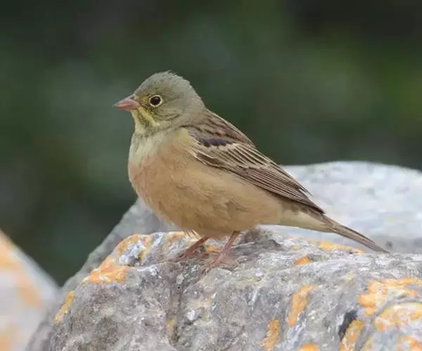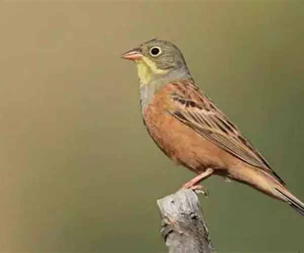 圃鹀(学名:Emberiza hortulana):体重20-25克,体长150-175毫米,属小型鸣禽。喙为圆锥形,与雀科的鸟类相比较为细弱,上下喙边缘不紧密切合而微向内弯,因而切合线中略有缝隙;体羽似麻雀,头上、后颈及胸橄榄绿色,翕呈栗褐色;下体大部分淡栗色;飞翔时最外侧两对尾羽的白色显著。虹膜肉桔色,嘴红褐色,脚淡红棕色或肉红色。