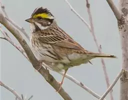 黄眉鹀是雀形目鹀科鹀属鸟类,体型中等偏小。雄鸟头部主要为黑色,冠纹白色,眉纹前段黄色而后段白色,…