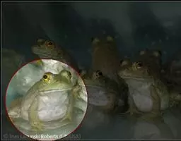 绿臭蛙,无尾目蛙科臭蛙属。雄蛙体长78~88mm,雌蛙体长93~131mm。头部扁平,头长略大于头宽,…