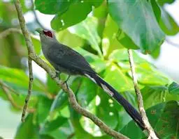 绿嘴地鹃:体形似小鸦鹃,但羽色大致绿灰;嘴绿色,头侧眼的周围有一裸区;后爪弯曲。虹膜赤红色,…