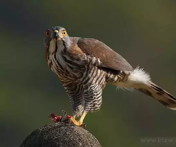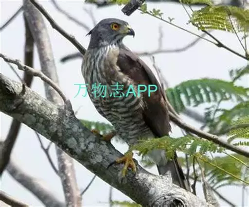 凤头鹰(学名:Accipiter trivirgatus)属中型猛禽,体长41-49厘米。头前额至后颈鼠灰色,具显著的与头同色冠羽,其余上体褐色,尾具4道宽阔的暗色横斑。喉白色,具显著的黑色中央纹;胸棕褐色,具白色纵纹,其余下体白色,具窄的棕褐色横斑;尾下覆羽白色;飞翔时翅短圆,后缘突出,翼下飞羽具数条宽阔的黑色横带。幼鸟上体褐色,下体白色或皮黄白色,具黑色纵纹。