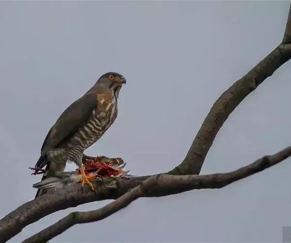 • 褐耳鹰的体形比苍鹰要小得多,为小型猛禽,体长为31-44厘米,体重217-325克。上体灰色,…