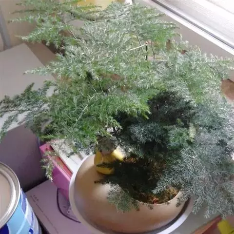 自然式:以文竹自然生长的株型为主,仍采用摘去生长点,物遮和利用其趋光性等基本方法,使枝叶舒展,给人以自然的美感。