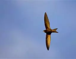 白腰雨燕(学名:Apus pacificus),两翼和尾大都黑褐色,头顶至上背具淡色羽缘、下背、两翅表面和尾上覆羽微具光泽,亦具近白色羽缘,腰白色,具细的暗褐色羽干纹,颏、喉白色,具细的黑褐色羽千纹。喜成群,常成群的在栖息地上空来回飞翔。飞行速度甚快,常边飞边叫,声音尖细,为单音节。以各种昆虫为食,主要种类有叶蝉、小蜂、姬蜂、蝽蟓、食蚜蝇、寄生蝇、蝇、蚊、蜘蛛、蜉蝣等。在飞行中捕食。
