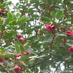 红花荷:金缕梅科红花荷属常绿乔木,高可达12米,嫩枝颇粗壮,叶厚革质,卵形,光滑无毛,有三出脉,叶…