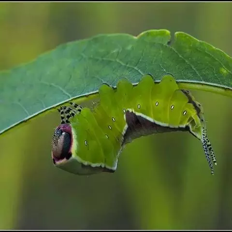 蛹:头顶的1对突起短小而前伸。中胸背面中央有1根长大的突起伸向身体的上前方。从该突起的顶端沿背线发出1条黄褐色棱线直达头顶,另1根棱线沿背线向后伸到后胸前缘时分为2支,顺亚背线向后到达腹末时又合二为一。身体各体节气门下线上有1条黄褐色纵线。体色黄绿色半透明,散生有绿色的小斑点。体长约31 mm 。