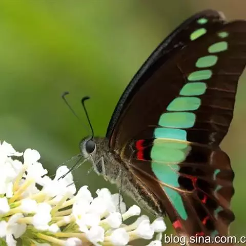 青带凤蝶Graphium sarpedon ,又名青凤蝶,是最普遍的中型凤蝶,飞行速度很快。青带凤…