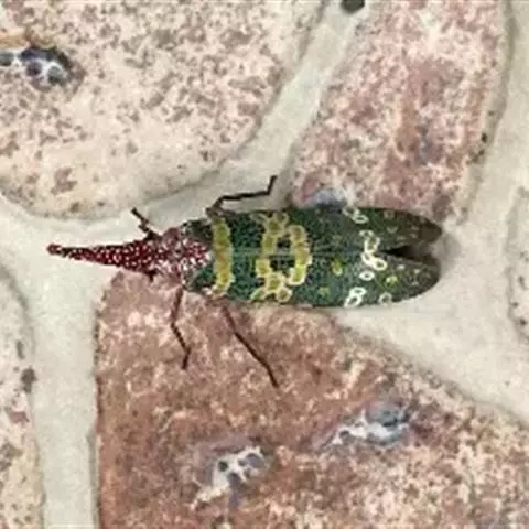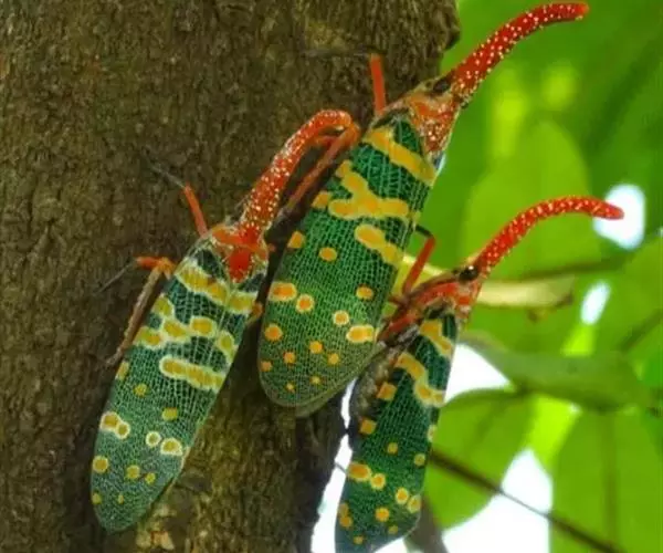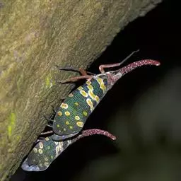 龙眼鸡是同翅目蜡蝉科蜡蝉属昆虫,又名龙眼蜡蝉、黄虫,长鼻子。体色艳丽;头额延伸如长鼻,额突背面红褐色,…