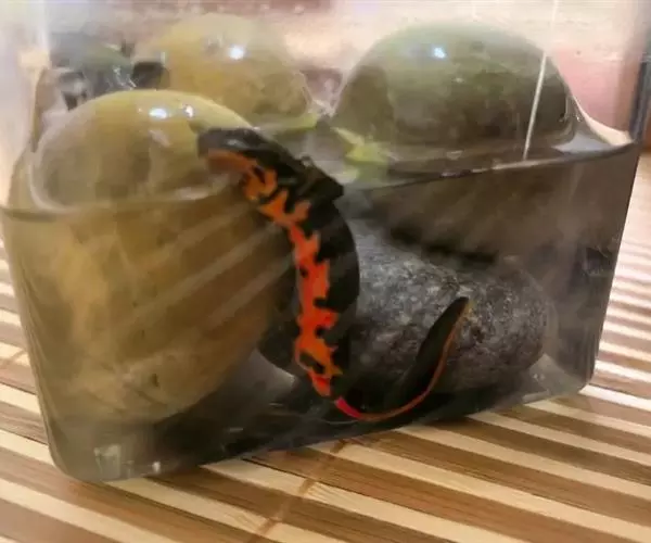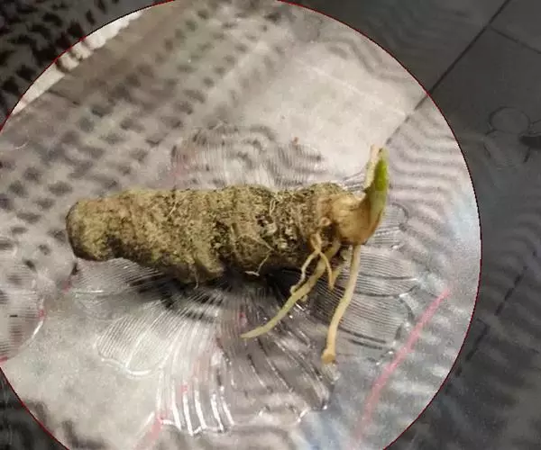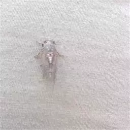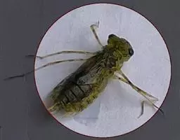 初龄若虫体长约4.2mm,酒瓶状,黑色头部略呈长方形,前缘稍凹陷,背面中央具一纵脊,两侧从前缘至复眼有弧形脊。中脊两侧至弧形脊间分泌有点点白蜡,或相连成片,胸部背板有3条纵脊和许多白蜡点,腹部两侧浅黄色,中间黑色。
