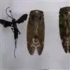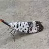 龙眼鸡成虫体上有一种寄生性天敌,龙眼鸡寄蛾Fulgoraecia bowringii Newman以幼虫在龙眼鸡成虫腹部背面寄生,是为外寄生。成虫体长约10mm,翅展约23mm,黑褐色。前翅散布银灰色鳞斑,缘毛色淡。触角双栉状,雌蛾的栉支较长。卵产于寄主恬动的树木上,孵出幼虫寻找到寄主后,脱皮变成蛞蝓型幼虫,体淡黄白色,靠趾钩牢固的附着在寄主腹部背面节间膜附近,由幼虫吐液形成的丝道上,随寄主飞翔而不会脱落。成长幼虫体粗短,肉色,椭圆球形,约有半个蚕豆大小,背面复白色蜡粉,头缩在前胸下,腹部短,腹足5对,趾钩单序扁椭圆环形,钩的基部有齿。常一或两三头一起,寄生于龙眼鸡腹部背面,头部插进节间膜下,吸吮体液。这种外寄生可能导致寄主失去繁殖力。蛹在包有幼虫蜡被的白色茧中,羽化时黑褐色的蛹壳半露在茧上。