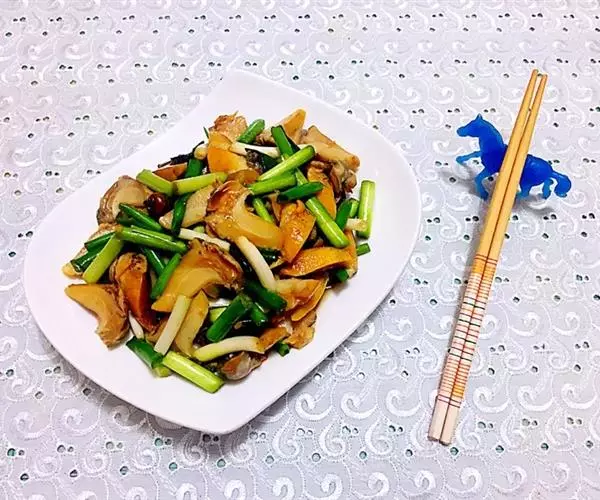 4. 锅内留少许热油爆香葱姜末,加入生抽,糖,盐,味精,少许湿淀粉兑成汁,后加入主料翻炒均匀后加入蒜末出锅即可。