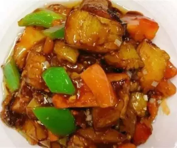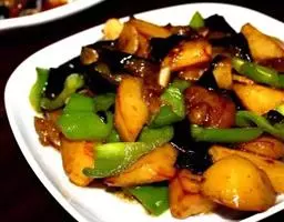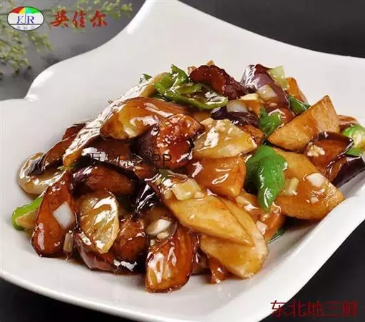 地三鲜(Sauteed Potato、green pepper and eggplant) ,是一道东北传统名菜,制作材料是三种地里时令新鲜的食材:茄子、土豆和青椒。它不仅在于鲜浓的味道、天然绿色的食材,更胜于它涵盖多种食材的营养,让三味非常普通的食材做成鲜爽无比的佳肴。