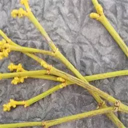 常绿小乔木,高约10米;树皮褐色,粗糙或有纵裂;枝圆柱状,带灰褐色,具条纹,有多数皮孔和半圆形的叶痕;多分枝,幼枝光滑无毛;小枝细长,淡绿色,节间稍肿大。