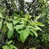 叶对生,叶椭圆状卵形,膜质,长4~8厘米,宽2~4厘米,先端急尖或近急尖,基部楔形或阔楔形,多少下延,边缘波状,稍外折,背面有白粉,无毛;中脉在背面凸起,侧脉约10对,网脉不明显;叶柄细长,长1~1.5厘米。