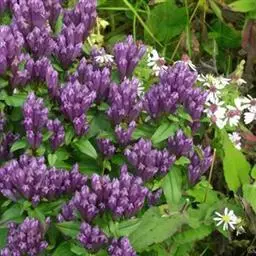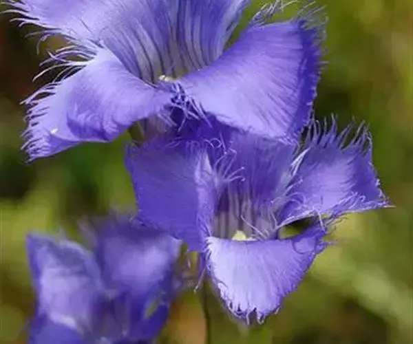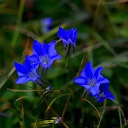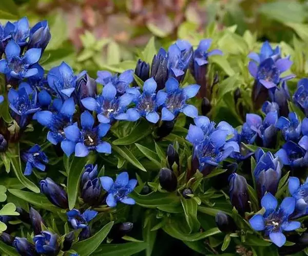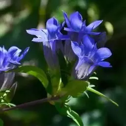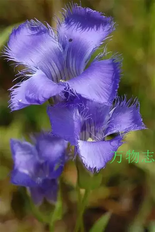 龙胆植物花色艳丽,色彩丰富,有紫、白、蓝、黄白等多种颜色,适宜作为花坛、花镜或盆花。龙胆最高不过四、五十厘米,大部份是矮小贴地丛生。一株上有许多分枝,花生于枝上顶端,成古钟形或漏斗形,有4-5个裂瓣,全缘的,也有细裂的成流海似的须。龙胆花在秋冬季一片枯黄的草丛中临风开放,显得分外朴实和幽静,龙胆开花一片片一簇簇,临风摇曳,显出一种淡雅、素静的美,因而成为著名的花卉。