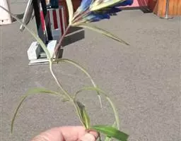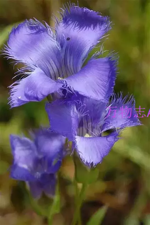 条纹龙胆(Gentiana striata Maxim.)一年生草本,高10-30厘米。根细、少分枝。茎淡紫色,直立或斜升。蒴果内藏或先端外露,矩圆形,扁平,长2-3.5厘米,宽0.7-0.8厘米,柄粗壮,长1.5-2厘米,2瓣裂;种子褐色,长椭圆形,三棱状,沿棱具翅,长3-3.5毫米,宽约2毫米,表面具网纹。花果期8-10月。