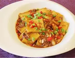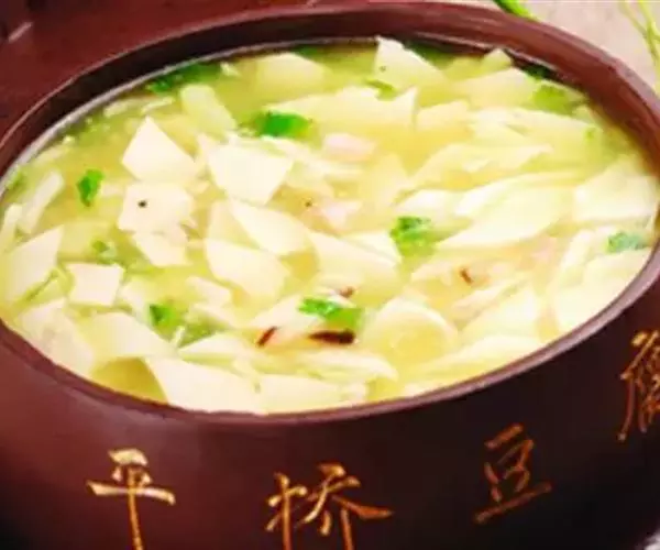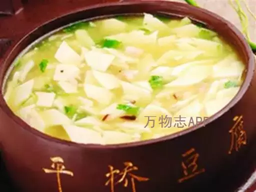 过桥豆腐是一道传统名肴,属于湘菜系。此菜柔滑细嫩,咸鲜适口,菜相美观,勾芡后,用小勺舀上一勺送入口中,感觉滑嫩鲜甜。集色泽、味道与文化内涵于一碟,营养丰富。
