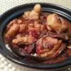 小鸡炖蘑菇是一道东北炖菜。通常是用干蘑菇、鸡肉和粉条一同炖制而成。榛蘑可以衬托出鸡肉的鲜香,粉条滑…