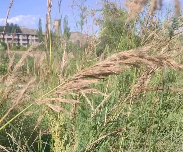 拂子茅(学名:Calamagrostis epigeios (L.) Roth):多年生草本,高80~150厘米,具有根状茎。条形粗糙的叶片。圆锥花序密而狭,常间断,灰绿色或微带淡紫色的小穗,含一小花,小穗轴不延伸,雄蕊3枚,夏季开花。