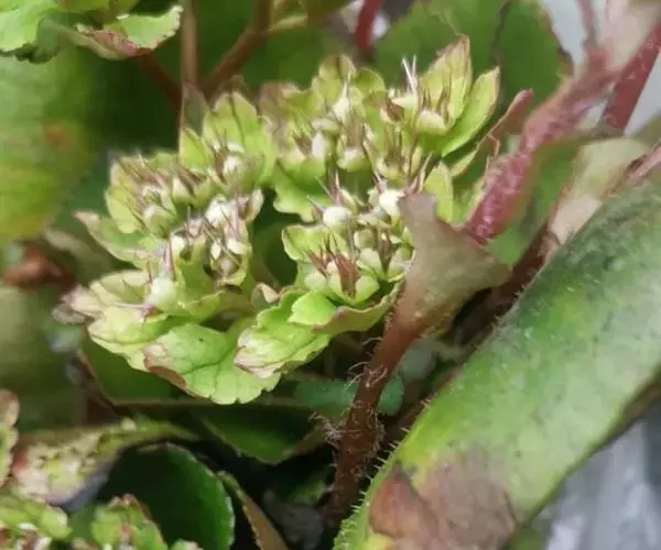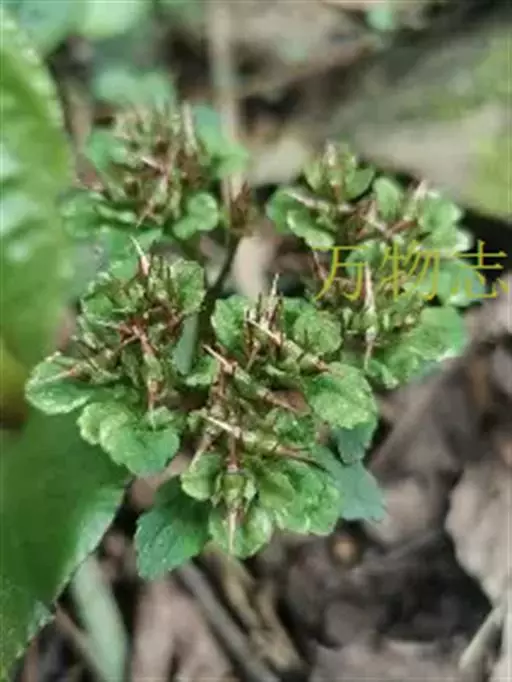 多歧聚伞花序长3-4.5厘米;花序分枝疏生褐色柔毛或近无毛;苞叶卵形至阔卵形,长0.6-2厘米,宽0.5-1.4厘米,先端钝状急尖,边缘通常具9-15圆齿(有时不明显),基部楔形,柄长3-10毫米;萼片近卵形至阔卵形,长3-3.2毫米,宽2.5-3.9毫米,先端微凹,无毛;雄蕊高出萼片,长4-6.5毫米;子房半下位,花柱长约5毫米,近直上;无花盘。蒴果长4-4.5毫米,先端近平截而微凹,2果瓣近等大,喙长3-4毫米;种子黑褐色,近卵球形,长约0.7毫米,密被微乳头突起。花果期4-6月。
