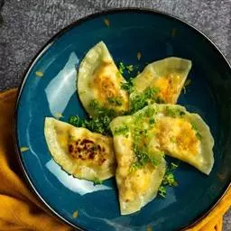 煎饺是中国北方地区特色传统小吃之一,是以面粉和肉馅为主要食材制作成水饺,放凉后用油煎制而成。煎饺表面酥黄,口感香脆。