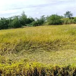 症状:叶鞘腐败病多发生在水稻孕穗期的剑叶叶鞘上,初期为害症状为暗褐色小斑,边缘模糊,后面小斑集结成云纹状病斑,似虎斑;病斑继续扩展到叶鞘大部分。叶鞘内的幼穗部分或全部枯死成为枯孕穗;稍轻的呈包颈的半抽穗状。潮湿时,病部着生粉霉,剥开剑叶叶鞘,可见菌丝体及粉霉,即为该病病菌。