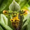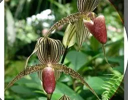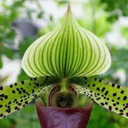 飘带兜兰 Stein)是兰科兜兰属的附生植物,叶基生,叶片宽带形,厚革质,无毛;花葶近直立,绿色,…