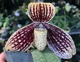 紫纹兜兰 Stein)是兰科兜兰属的地生或半附生植物。叶基生,叶片狭椭圆形或长圆状椭圆形,…