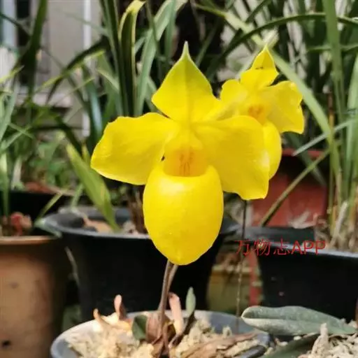 杏黄兜兰 兜兰又名拖鞋兰,夏秋或临冬开花,花期最长达70余天。西南地区的兜兰叶片通常要厚实硬朗些,花色更为亮丽显眼,有更好的抗旱保水机制,在抗逆性新品种选育上具有非常高的利用价值。