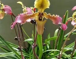 麻栗坡兜兰兰科,兜兰属地生或半附生植物。叶基生;数枚至多枚,叶片带形、革质。花葶从叶丛中长出,…