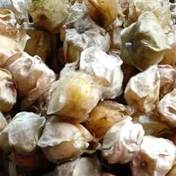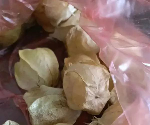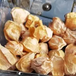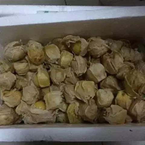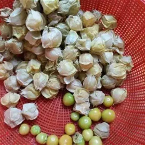 酸浆果实成熟后自然脱落,人工捡拾收获,其质量最佳。成熟果外宿花萼枯黄,果实淡黄色,香味浓郁。如果果实成熟度不够,味差,则应催熟。可用2000倍的乙烯利喷洒果实后堆放,待其充分成熟。供贮藏或远销运输的果实,以带果外宿存花萼为宜。