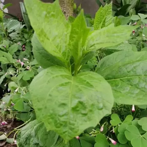 多年生草本,基部常匍匐生根。茎高约40-80cm,基部略带木质,分枝稀疏或不分枝,茎节不甚膨大,常被有柔毛,尤其以幼嫩部分较密。叶长5-15cm,宽2-8cm,长卵形至阔卵形、有时菱状卵形,顶端渐尖,基部不对称狭楔形、下延至叶柄,全缘而波状或者有粗牙齿、有时每边具少数不等大的三角形大牙齿,两面被有柔毛,沿叶脉较密,上面的毛常不脱落,沿叶脉亦有短硬毛;叶柄长约1-3cm。