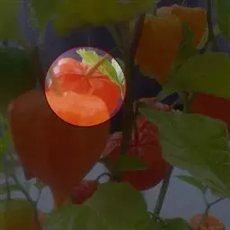 果梗长约2-3cm,多少被宿存柔毛;果萼卵状,长2.5-4cm,直径2-3.5cm,薄革质,网脉显著,有10纵肋,橙色或火红色,被宿存的柔毛,顶端闭合,基部凹陷;浆果球状,橙红色,直径10-15mm,柔软多汁。种子肾脏形,淡黄色,长约2mm。花期5-9月,果期6-10月。