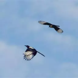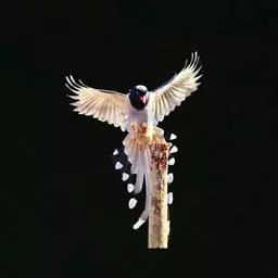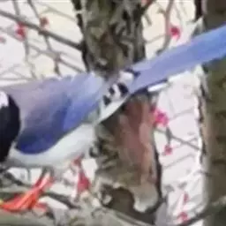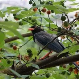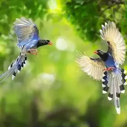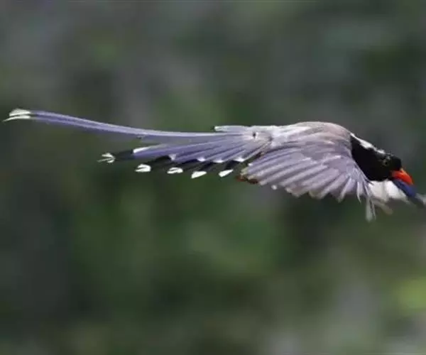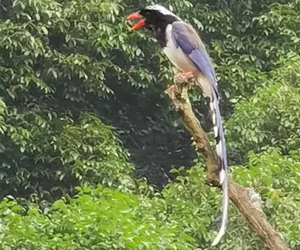 有时还会凶悍地侵入其他鸟类的巢内,攻击残食幼雏和鸟卵。每年的3月至5月是红嘴蓝鹊的繁殖期,在此期间,亲鸟护巢性极强,性情十分凶悍,人若接近其巢区,则啼叫飞舞不止,甚至对人体进行攻击。