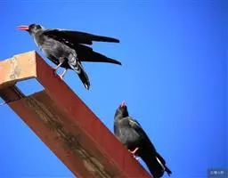 • 红嘴山鸦,是脊索动物门鸟纲雀形目鸦科鸟类。红嘴山鸦的成鸟通体羽毛纯黑色具有蓝色金属光泽,…