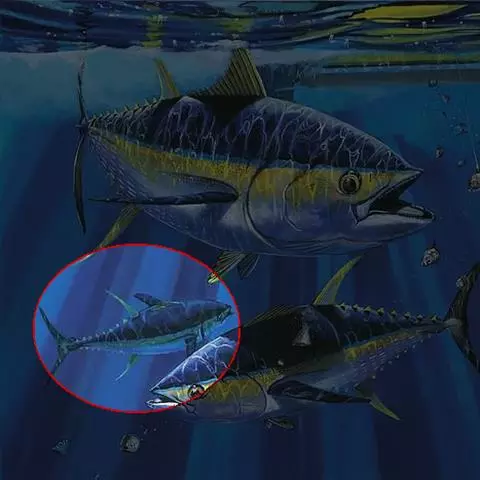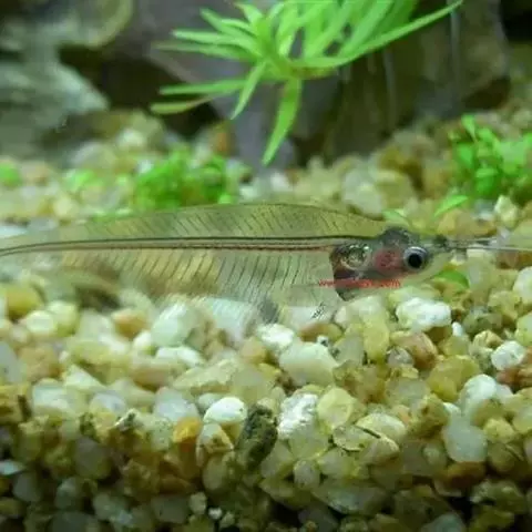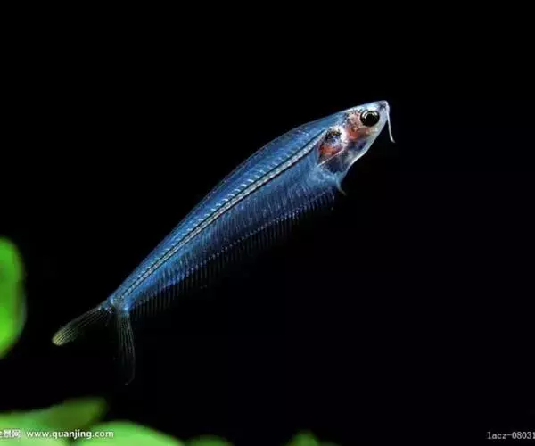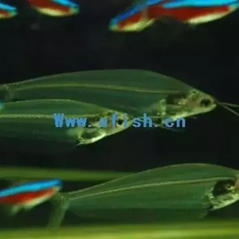 尾柄极短,尾鳍叉形。背鳍退化,臀部和臀鳍基很长,前后鳍条等宽。通体透明,脊骨、刺、鳍条和内脏等清晰可见。色泽淡青如玉,活像一件高档玉雕工艺品。