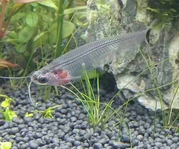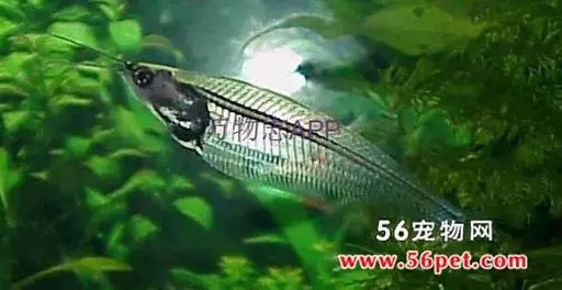 玻璃猫鱼身长10~12厘米,形似一片柳叶。头吻尖, 口上有长触须2根,常前伸或自由转动,探测水流、敌情、障碍和协助觅食。胸腹极短,头胸腹部只占全长的1/4。
