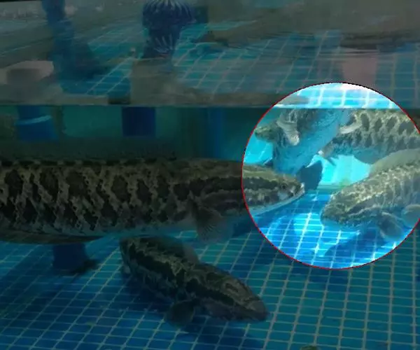 乌鳢俗称黑鱼,它生性凶猛,繁殖力强,胃口奇大,常能吃掉某个湖泊或池塘里的其他所有鱼类,甚至不放过自己的幼鱼。黑鱼还能在陆地上滑行,迁移到其他水域寻找食物,可以离水生活3天之久。是中国人的“盘中佳肴”。