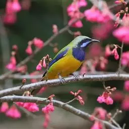 金额叶鹎是和平鸟科、叶鹎属的鸟类。体长16-20厘米。额和头顶前部金桔色,整个上体包括两翅表面草绿色。…