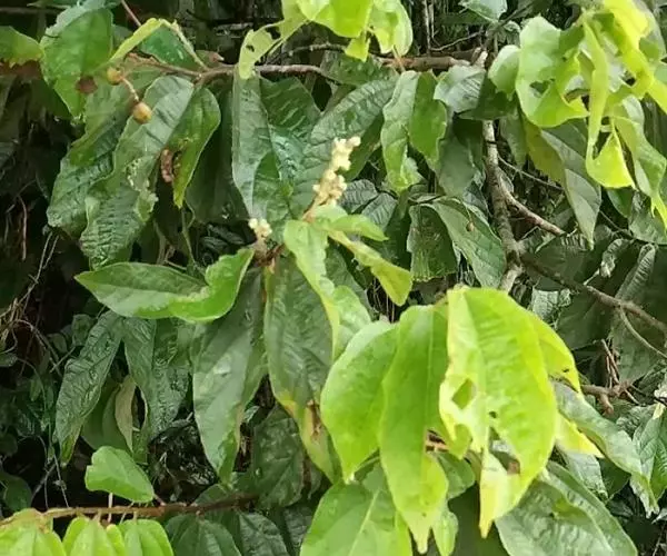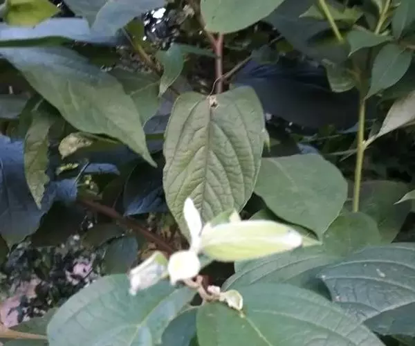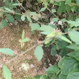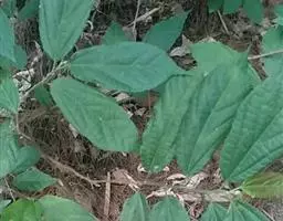 幼枝被毛。叶薄革质,卵状长圆形,长8-18厘米,先端渐尖,基部ff初两面被星状柔毛,后脱落无毛,3出脉的两侧脉由基部生出,向上过中部,边缘有细锯齿;叶柄长1-1.5厘米,托叶线状披针形,长5-7毫米。