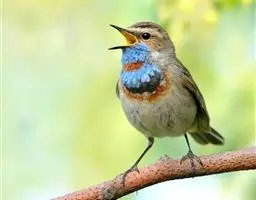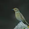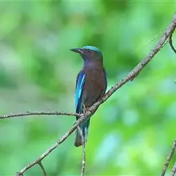 雌鸟上体橄榄褐色,尤以腰和尾上覆羽较棕,两翅褐色,羽缘棕色,中央一对尾羽棕色,其余尾羽褐色或暗褐色,羽缘棕色,颈侧有一辉蓝色斑。颏喉皮黄色,其余下体赭灰色或皮黄橄榄褐色。翅下覆羽和腋羽白色。