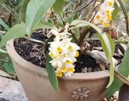 束花石斛是兰科石斛属植物。茎粗厚,肉质,下垂或弯垂,圆柱形,不分枝,具多节。叶二列,互生于整个茎上,…