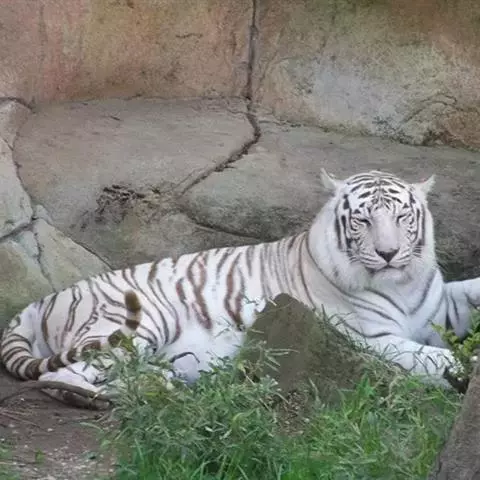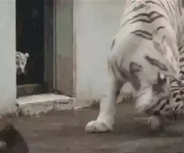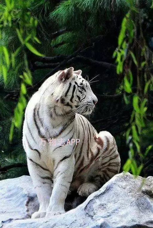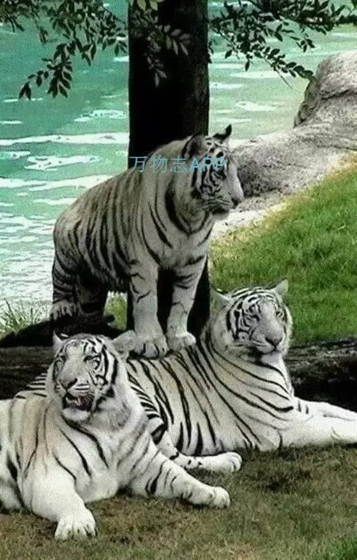 2、雪虎,全身白色,有淡淡的棕色斑纹,野生已灭绝,数量比白虎少得多。