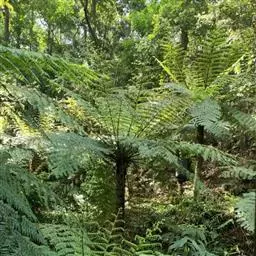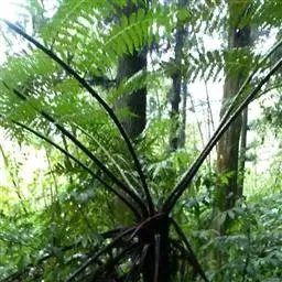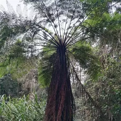小黑桫椤(学名:Alsophila metteniana Hance)是桫椤科、桫椤属蕨类植物。植株高可达2米多。根状茎短而斜升,密生黑棕色鳞片。叶柄黑色,基部生宿存的鳞片;鳞片线形,淡棕色,光亮,有不明显的狭边;叶片三回羽裂;小羽片向顶端渐狭,深羽裂,基部一对裂片不分离;裂羽狭长,先端有小圆齿;叶脉分离,每裂片有小脉5-6对,单一,鳞片小,灰色,孢子囊群生于小脉中部;囊群盖缺;其长度比孢子囊稍长或近相等。